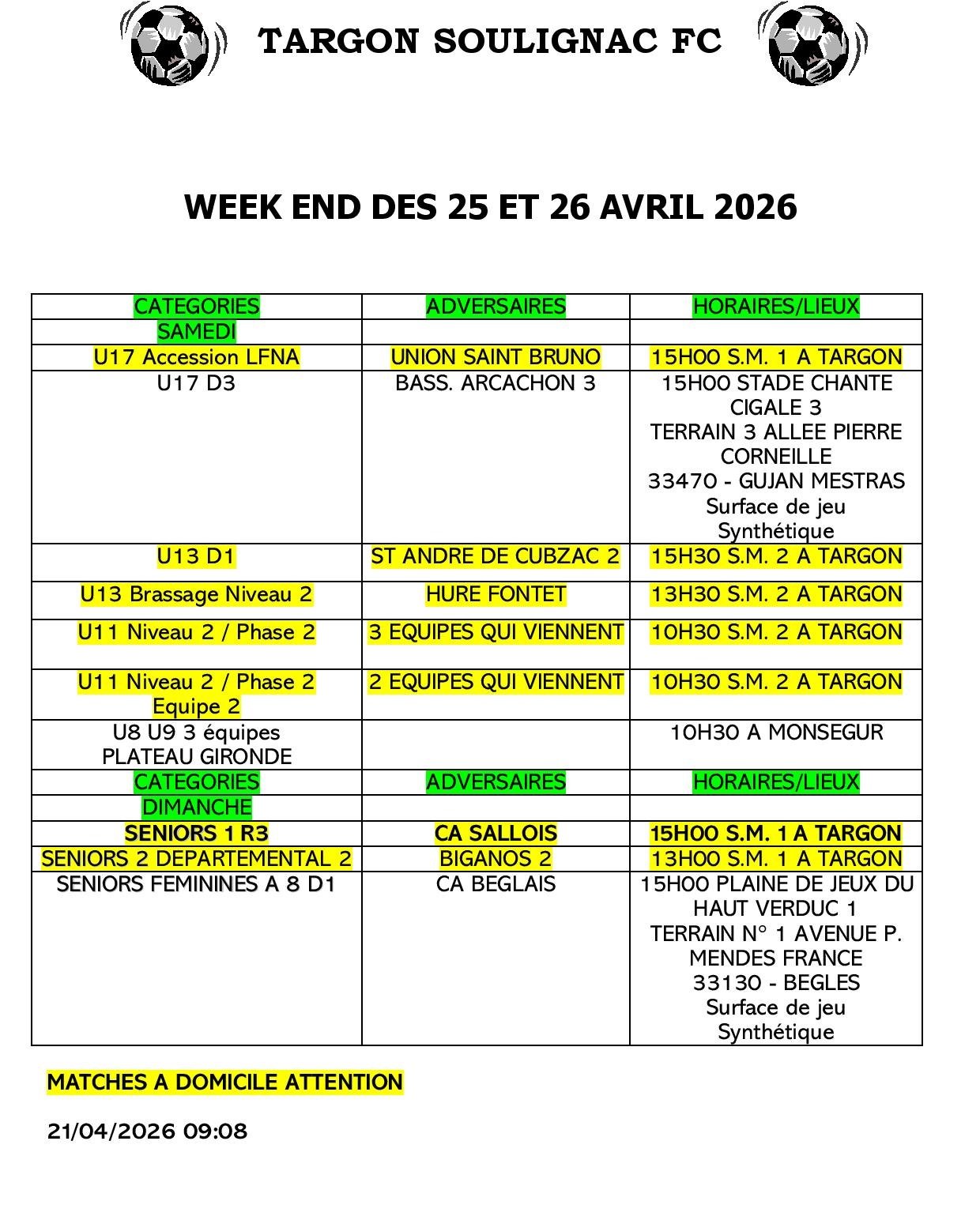 Publié le mardi 21 avril 2026 - Targon Soulignac Football Club (TSFC)